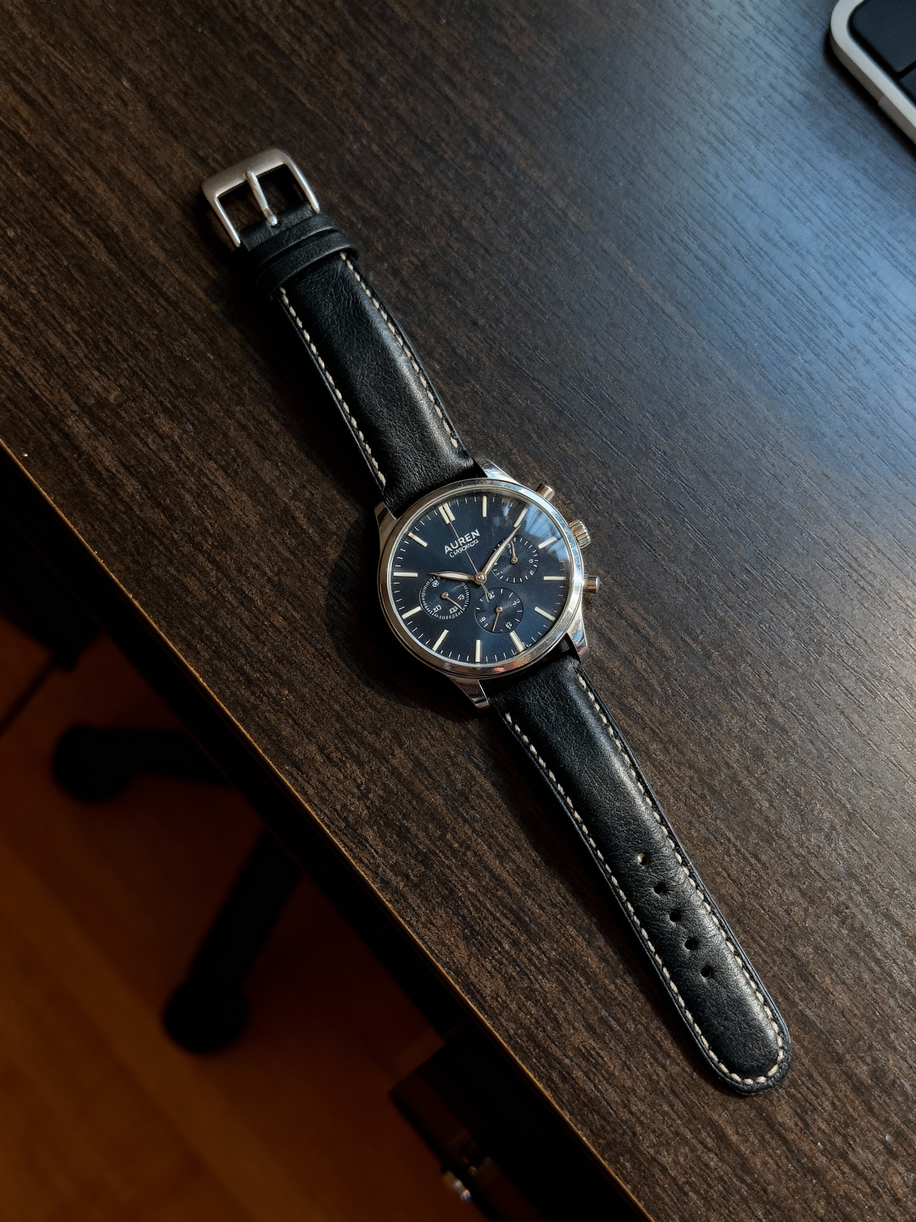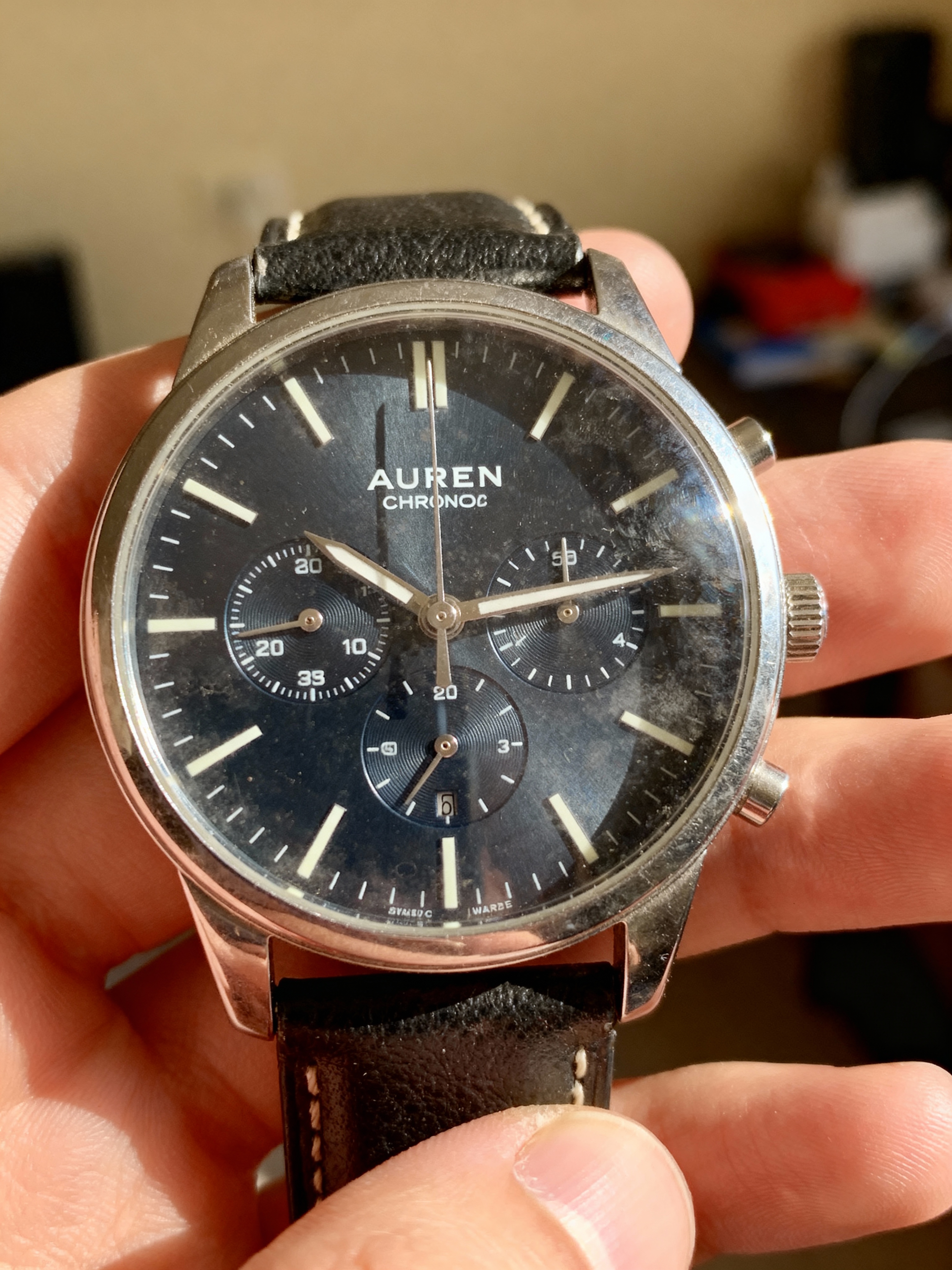 <figure><img src="https://content.gitbook.com/content/vXci8U4vGpVlytZ3QgsN/blobs/UG2PL7szjI3DnNWU9l4K/Muiz_Shakeel_A_casual,_unprofessional_photo_of_an_AUREN_Chrono_wristwatch_held_5e6b8ebc-0667-455f-b266-c6113540cc91.jpg" alt=""><figcaption></figcaption></figure>